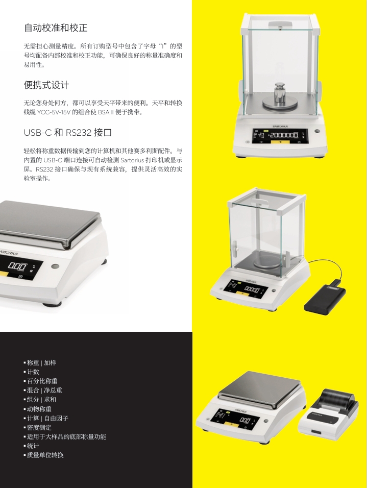3)11个内置的应用程序,以简化日常称重流程:称重 | 加样、计数、百分比称重、混合 | 净总重、组分 | 求和、动物称重、计算 | 自由因子、密度测定、底部称重功能、统计、质量单位转换;